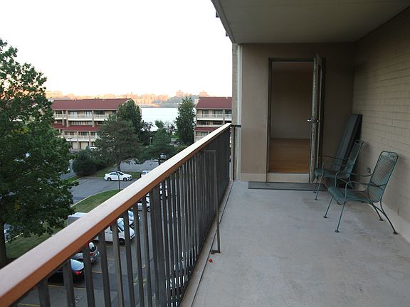 Lovely unit located in Hudson Harbour. Unit features open layout, large liv room w/hardwood floors with large wrap-around balcony, dining room w/ hardwood flrs, updated kitchen, master bedroom has master bath, additional nice size bedroom and additional bath. Maintenance includes all utilities. Enjoy the pool, play tennis, exercise at the gym, 24 hour doorman. Close to major transportation to NYC!