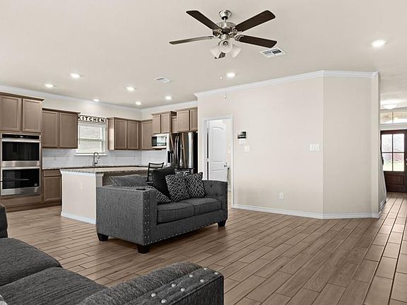 Located in the vibrant community of Harker Heights, TX, this home boasts 5 spacious bedrooms and 3 full bathrooms. The property is equipped with central heating and air, ensuring your comfort in every season. Each room is fitted with ceiling fans for those warmer days. The house also features a mix of plush carpet and elegant wood flooring, adding a touch of sophistication to the space. The property comes with a two-car garage, providing ample space for your vehicles or additional storage. For your peace of mind, the house is secured with a state-of-the-art security system. Outdoors, you'll find a well-maintained sprinkler system and a privacy fence, offering you a secluded retreat to enjoy the Texas weather. This home is a perfect blend of comfort and convenience, waiting for you to make it your own.