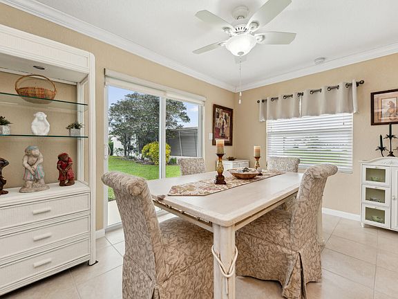 Spacious backviews from this lovely 2BR/2BA Edgewood model. Front porch with insulated roof and extra long double driveway. All windows replaced plus hurricane accordion shutters. Kitchen cabinetry all replaced plus extra cabinetry with extra counter space and pantry. Neutral tile thru out . Both baths remodeled. Ideally located walking distance to R3 and R2 Clubhouses with heated pools. Roof replaced 2010. A/C Replaced 2022. Electric Panel replaced 2020. Textured ceilings plus crown molding. Sliding glass doors out to back patio. Perfect spot for barbecuing and entertaining. Free 18-hole Par 3 golf course. Minutes to ocean beaches, I-95, restaurants and shopping. Furniture negotiable direct with owner. Paid up recreation lease in full.Available for quick close...A GEM