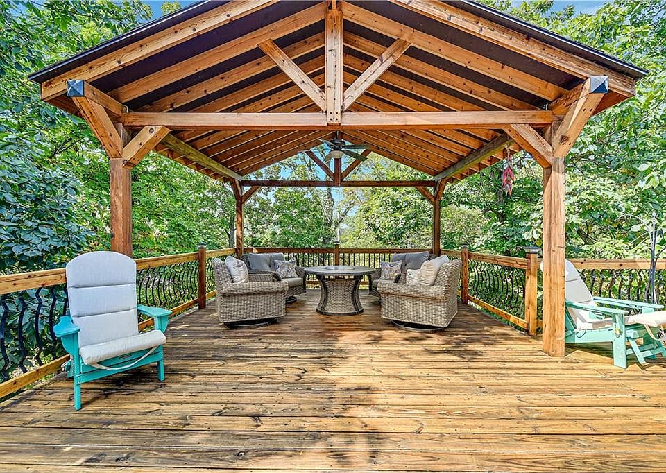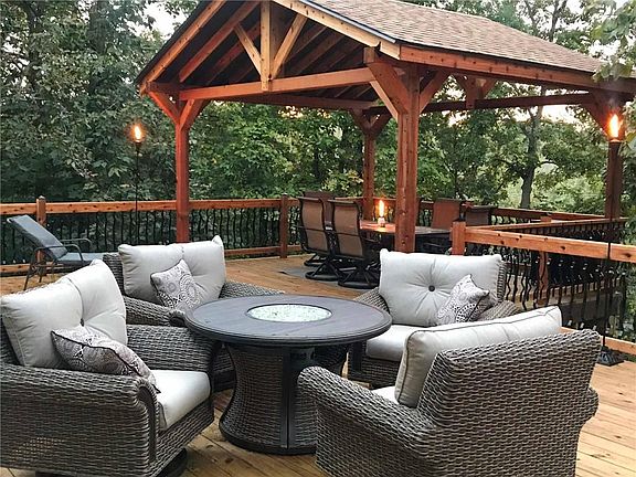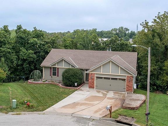 Beautiful Ranch home with HUGE custom deck with shade structure on an incredible treed, cul-de-sac lot ready for you to move in! Walk out the back of your lot to Blue Springs lake and miles of walking trails. Inside you will find SO MANY custom details throughout. Vaulted ceilings and brick fireplace in the living room. Gorgeous kitchen with tile floor, ceramic backsplash, accent lighting, full pantry and stainless appliances. Main floor laundry and primary suite with walk-in closet and 2nd closet. New carpet and vinyl flooring! Finished walkout basement with full wet bar, another brick fireplace, large 4th bedroom, TONS of storage and additional 1/2 bath. Enjoy the fabulous view from your stunning deck with covered area perched above the nearly 1/2 acre yard. Loved and cared for by the current owners for three decades, this is one you won't want to miss!