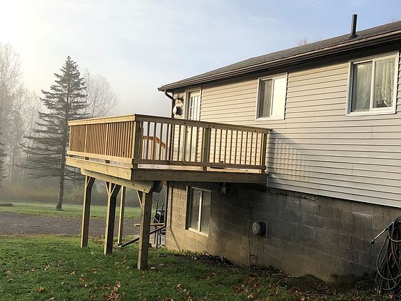 Secluded very private home on 9 acres. New updates include front deck, 4 Anderson windows, flooring, rough cut siding, cherry kitchen cabinets, granite countertops. The barn is 24x32 and has water and electricity that could have endless uses. The garage has been converted into a building that could be used for a workshop or man cave. It has new siding, door, and window. The home is surrounded by woods and apple trees and borders Pleasant Brook. You can watch the deer and other wildlife from your living room. Near to Beaver Meadow State forest and only 10 minutes to Sherburne. Multiple heating sources including wood stoves in the living room and basement make it cozy and economical.