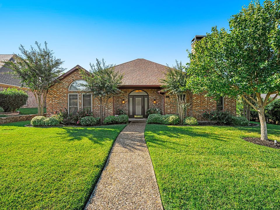 Step inside to an inviting open floor plan filled with natural light, highlighted by a one-of-a-kind enclosed atrium that connects multiple living spaces and creates a warm, airy flow. The home offers versatile living areas, including a cozy den with a soaring stone fireplace and vaulted ceilings, a spacious family room featuring wet bar, and a dining area perfect for entertaining. The kitchen features stainless steel appliances, rich cabinetry, and stylish finishes that make cooking a joy and includes a separate breakfast room. The primary bedroom offers a true retreat with updated spa-like bath featuring dual sinks, rain shower, soaking tub and his-and-her closets. In addition, the home also offers three additional bedrooms and two full bathrooms. Along with sunroom, perfect for home gym or office.