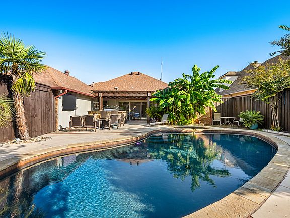 Retreat to the backyard oasis, where a sparkling pool, heated spa, and fully equipped outdoor kitchen set the stage for year-round entertaining. With multiple seating areas and lush landscaping, this space feels like your own private resort.