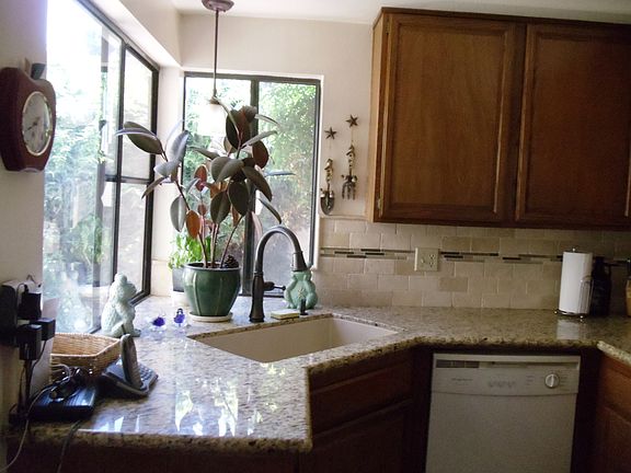 Upgraded Stonebridge Townhome - You must see this lovely updated home! Custom paint with crown molding. Wood look ceramic tile flooring in most rooms. Formal living room, formal dining room, family room with fireplace. Sunny kitchen with granite counter tops, gas range, micro-hood, pantry, updated lighting. Master suite includes vaulted ceiling, large walk in closet, dressing area with two sinks, huge tile shower. Two additional bedrooms upstairs. Upstairs hall bath updated with granite counter tops, tile surround, bronze fixtures. Convenient 1/2 bath downstairs. Inside laundry room. Very private patio. 2 car garage with auto opener. Common area pool. 1 year lease. Small dog considered. No smoking. No section 8. Military tenants welcome. (RLNE1866261)