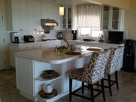 Sit-down panoramic amazing ocean views from living room, dining room, kitchen and master bedroom. Built-in SubZero refrigerator, SS dishwasher, tile throughout lower level, carpeting on second level. Downstairs bath has shower and wheelchair access. Two-car garage, tons of storage space, quiet neighborhood on level cul-de-sac street. Great place for kids--a really nice home. Clean, light and beautiful.