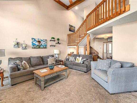 This beautifully designed home offers the perfect blend of comfort and space. Featuring 2 bedrooms and 3.5 bathrooms, it’s ideal for those who appreciate open, functional living. Step into the heart of the home—an updated kitchen complete with granite countertops, stained wood cabinets, pantry and plenty of prep space for cooking and entertaining. Adjacent is a generous dining area with custom built-ins, perfect for hosting family gatherings or casual meals. The great room boasts vaulted ceilings, built-in shelving, skylights that provide natural light, and a cozy fireplace for those cooler evenings. Upstairs, a versatile loft area offers additional living space—perfect for an office or reading nook.