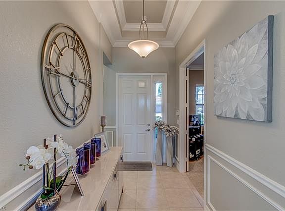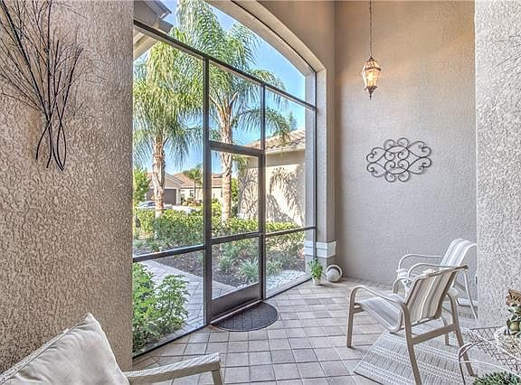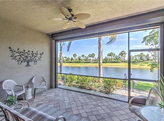 Beautiful, wide lake views surround you. Model perfect. 2 Bedroom & Den villa with 2 car garage built in 2015. This spacious home has so many quality upgrades added that it is better than new construction and can't be duplicated for the price. 7 1/4" crown, decorative molding, 4" baseboards throughout. Foyer: double crown molding & tray ceiling. Kitchen: 42" raised panel cabinets. Quartz counter tops, quartz back splash, GE Profile built-in range/convection oven. Stainless GE Profile appliances. Under cabinet & above cabinet lighting. Dining room: custom molding, mirrors and lighting. Upgraded tile in living areas. Custom paint colors. Master bedrm: tray ceiling accented with crown molding. Master bath: frameless shower door, dual vanities with granite counter tops. Laundry: new high end washer/dryer, extra cabinets and tub. Garage: extra overhead storage racks and epoxy paint on floor. Large lanai: lake view, upgraded pavers, Motorized roll-down hurricane shutter. Accordion shutters for master bedroom window. Furniture available separately. Resort style pool w/ cabanas, lap pool, fitness center, clubhouse. Fees only $309/month include insurance, ext. paint. lawn & more.