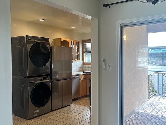 Located at a Cul-de-sac street, this bright and immaculate two bedrooms/ one bath is the upstair unit of triplex with no common wall. Warm wood beam ceiling in living room. Toal of 1200 sf living space includes two balconies; one oversize off the bigger bedroom. Mini split AC system in living room and each of the bedroom. Double sink vanity. Brand new dishwasher, French door fridge, cooking stove and cloth washer & dryer. Beautiful zen garden & tranquil landscape. One car garage and additional drive way parking. Culver City adjacent, easy access to Marina del Rey and Venice, Mar Vista farmers market. Serious inquires please. Call or text for apt showing. Owner pays for water and trash. Tenant is responsible for electricity, gas and cable.