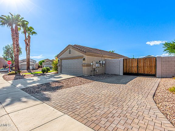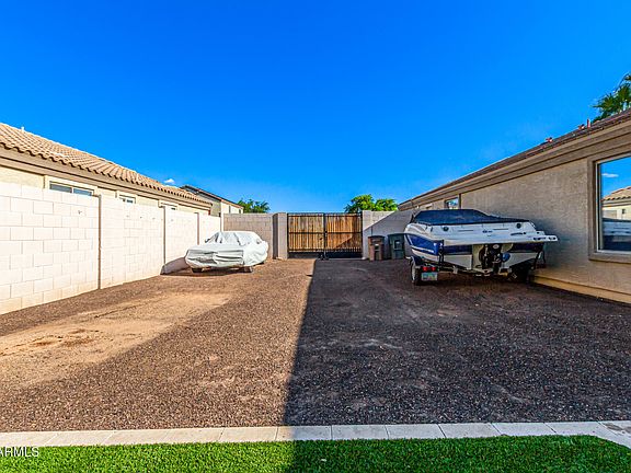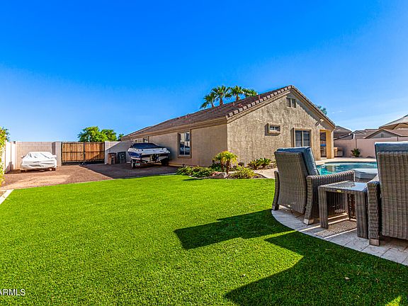 Not located in Sun City! Peoria Schools! ALL AGES WELCOME Oversized lot featuring a single level gorgeous home with newer pool (2021) and large RV gate w/ pavered driveway with room for six cars (boat,etc) behind gate! Private backyard features tons of travertine pavers, lush landscaping & multiple seating areas. Large great room with surround sound. Newer wood plank tile throughout the home (except bedrooms have newer carpet) 4th bedroom makes a great den with doors to great room (still has closet area). Kitchen showcases stainless steel appliances, maple 42'' cabinets, ample counter space, and a large dining area. Primary retreat offers comfort galore with a walk-in closet and garden tub bath and shower. Located just a few minutes from Loop 303 & 5 minutes from 4 corners!