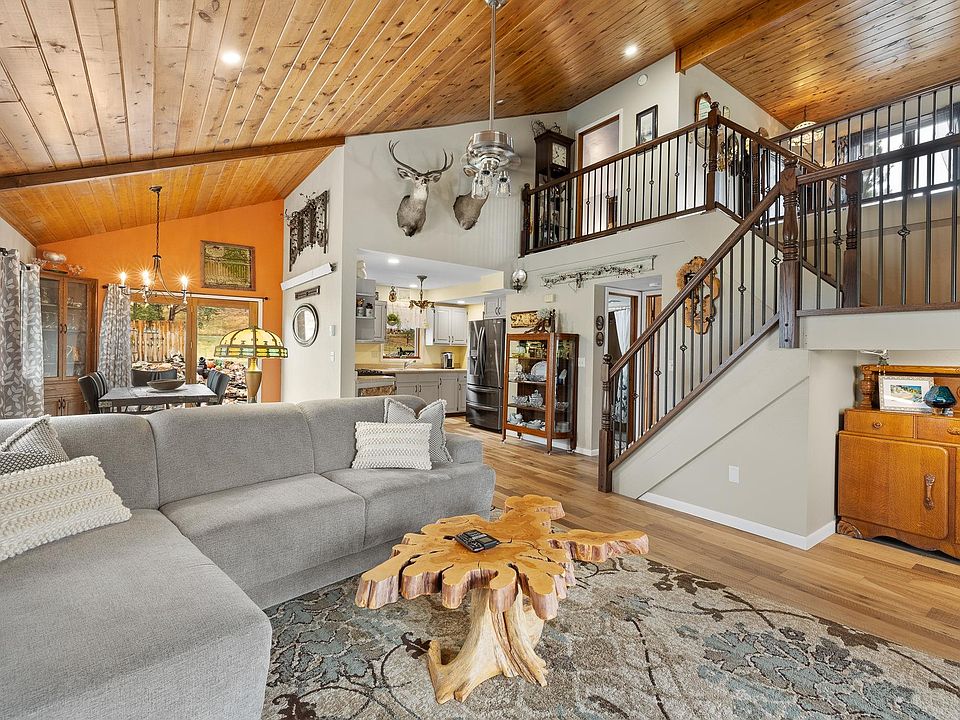 Listed by Lonnie Doney, KWBH, 605-407-1048. Nestled on a 3.33 acres, this move in ready home has been fantastically maintained and recently updated inside and out! *Offering 2 bedrooms, 2 bathrooms and 1,284sqft *A reconfigured main level layout now better suite's today's lifestyle and the open concept allows for easy living and entertaining *The spacious living room is accented by 2-story wood paneled ceilings, large windows and a converted gas fireplace *The nearby kitchen has been updated with a larger entryway, fresh paint, new appliances (including a gas stove) and new fixtures throughout *Expanded dining room area now has direct access to the back patio *1 main level bedroom with large walk in closet, and a full bathroom with inset shower/tub for easy accesibility *Main level laundry and mud room enroute to the attached garage *Up the custom wood staircase is a multi-use loft space and the private upper level master suite with walk in closet and private ensuite bath with walk in shower *Outside, the expansive concrete patio adds valuable living space to this home- enjoy the sights and sounds of the Black Hills from the comfort of your own home *Beautiful natural landscaping throughout the property including soaring pine trees, natural rock formations and a gently sloping yard to use as you wish *Outside has an attached 2 car garage PLUS a 26'x34' detached garage/shop that is insulated, has 220V electric service, epoxy floors, 10' side walls, and 2 overhead 8' doors