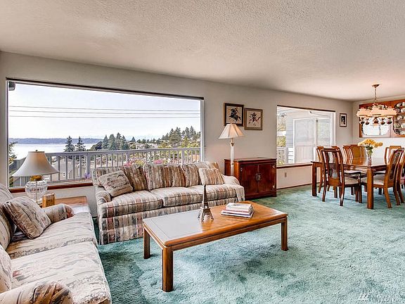 Custom built home in fabulous Shorewood on the Sound with expansive Sound and mountain views. Private setting and yard space. Meticulously maintained and loved. Entertaining size living/dng room adjacent to updated huge kitchen/great room & deck. Spacious light-drenched rooms & main flr master w/private patio. Lower level w/great view from family room & huge bedroom plus large patio. 2nd lower bedroom w/sink could easily convert to 2nd kitchen. Enormous lower level storage w/shelving.