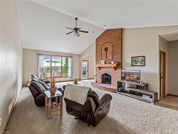 Welcome to 12036 Snode St in Alliance! This custom built brick ranch sits on a private 5.6 acres with amazing views. Step inside to see this well maintained 4 bedroom, 3.5 bath home. The large great room has a beautiful wood burning brick fireplace and vaulted ceilings. The kitchen has gorgeous cabinets and stainless steel appliances (2019). Convenient main-level laundry room located directly off the kitchen. The 1st floor master suite features a large vanity, garden tub with a separate shower, and walk-in closet. Two additional bedrooms on the main level with a jack and jill bath.Head downstairs to the walk-out 13 course basement to a cozy family room with a wood burning stove, 1-2 additional bedrooms, full bath, and 2 large storage areas. For outdoor entertaining, there's plenty of options with the brick patio downstairs or the large deck off the great room. Storage shouldn't be a problem with a 3 car attached garage, a 30 x 40 detached garage, and a 10 x 20 shed. America's Preferred Home Warranty included! This beautiful home is ready to be yours, call and schedule a private showing today!