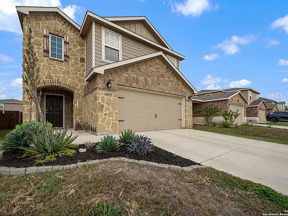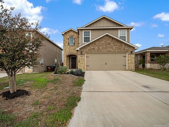 Welcome to your new home in the highly sought-after Silver Canyon subdivision! Step into a bright two-story foyer that opens to a spacious, flowing layout designed for both comfort and entertaining. The large family room seamlessly connects to the kitchen and dining area, creating the perfect setting for gatherings or relaxing evenings. The kitchen shines with granite countertops, a ceramic tile backsplash, and stainless steel appliances, all complimented by beautiful luxury vinyl plank flooring throughout the first floor. Upstairs, a versatile loft offers endless possibilities-home office, media room, play area, or whatever suits your lifestyle. All bedrooms are generously sized, and the primary suite features a double vanity and a spacious walk-in closet. Step outside to a welcoming backyard complete with a covered patio, an outdoor fireplace for cool Texas nights, and a storage shed for added convenience. The yard is ready for your personal touch, whether you envision a garden, play area, or custom outdoor living space. Water softener conveys. Ideally located just outside Loop 1604, you're minutes from UTSA, La Cantera, Hwy 16, and Hwy 211-offering quick access to shopping, dining, and major employers. Schedule to see it today!