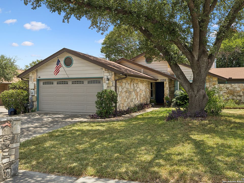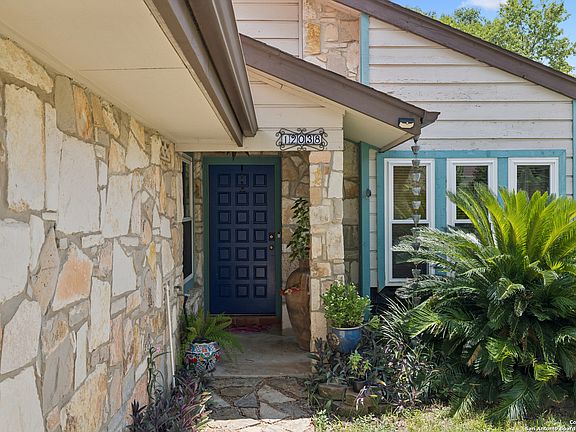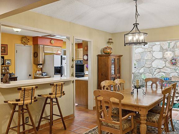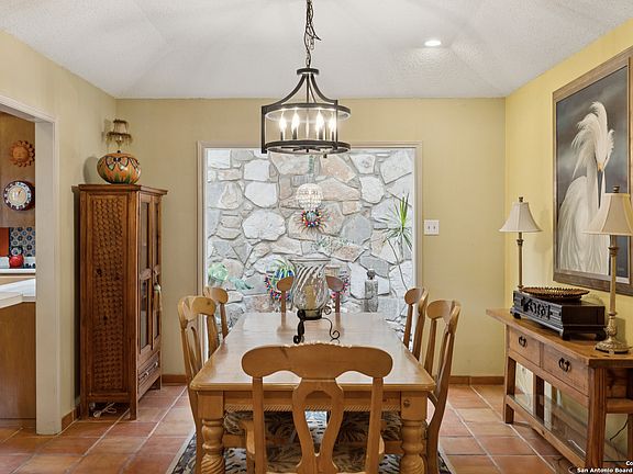 Welcome to 12038 Vista Nogal, a charming and character-filled home nestled in a peaceful San Antonio neighborhood. This 2-bedroom, 2-bath residence offers 1,480 square feet of inviting living space with Saltillo tile flooring throughout, creating a warm and timeless Southwestern feel. The kitchen is equipped with double ovens and a smooth cooktop-perfect for home chefs and entertainers alike. The living room features a cozy fireplace and vaulted ceiling, while the primary bedroom offers a private retreat with its own fireplace and ensuite bath. Step outside and fall in love with the backyard deck-ideal for outdoor dining, relaxing, or entertaining under the shade of mature trees. Additional highlights include a 2-car garage, stone exterior, and beautifully landscaped front yard. This home blends indoor comfort with outdoor charm in a truly special way.