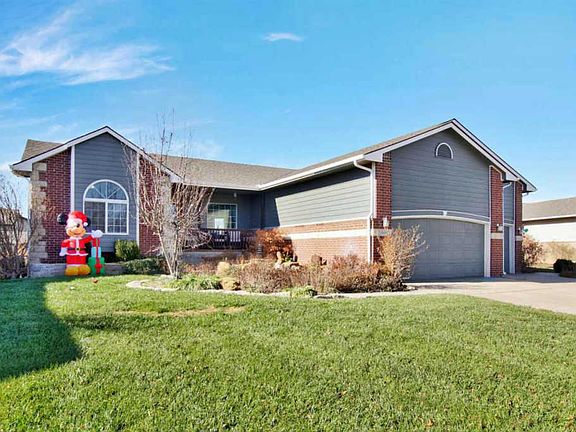 Welcome to your new home located in the desirable Goddard school district! You will love this 5 bedroom, 3 bath home with all the upgrades. Exterior of home has an abundance of landscaping, has been recently painted, nice deck, stone patio area, well and sprinkler. Inside you will find wood floors in living, kitchen and dining area. Kitchen features eating bar, custom pantry, gas range and gorgeous countertops. The basement is for all the people who love to entertain. Large rec area with stunning custom pieces. The stone wood burning fireplace surrounded by custom built ins will definitely catch the eye but the custom bar with a Southwest vibe is the center piece of the room. The concrete stained floors are perfect for clean up. If the basement isn't enough, there is two additional bedrooms and bath. Schedule your showing today.
