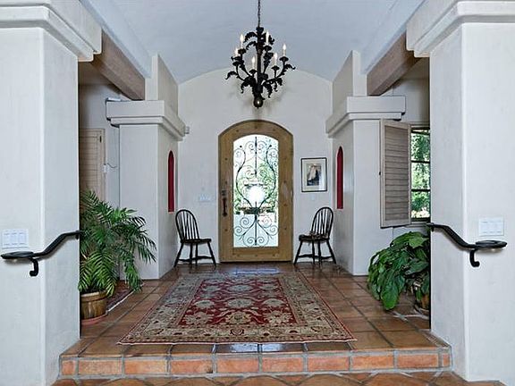 Welcome Home to one of the most beautiful homes hidden behind the private gates of Rancho Matilija. Wonderful entry which leads to a cozy but elegant living room with a magnificent fireplace. French doors lead out to the inviting backyard with tennis court, basketball court, pool and guest quarters with an outdoor fireplace and a lovely dining area under the blooming purple wisteria. This home has 3 bedrooms, 3.5 bathrooms, separate guest quarters, and also 5 car garages. There is a year round creek that runs down by the vegetable garden and a fire pit for those lazy evenings under the stars. This home is a perfect mix of casual and elegant living.