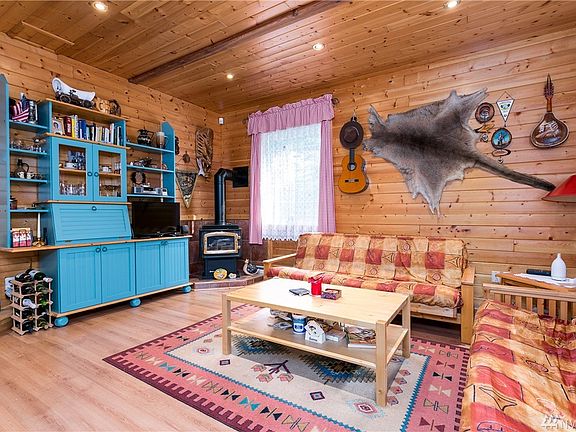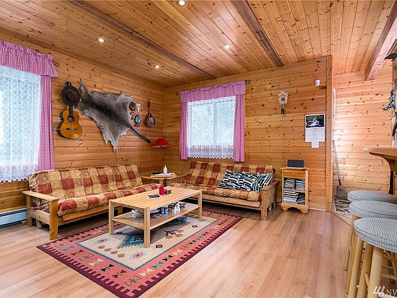 Bavarian styled home backing to national forest land and nestled at the base of Cascade Mountains. The 3 bedrooms are all oversized, offering the opportunity to sleep a lot people. Knotty pine walls and ceilings create a cozy cabin-in-the-woods feel. Furniture may be included, making this a turn key vacation property. Mt Baker Rim is a private gated community close to Mt Baker ski area and local hiking trails with a huge clubhouse, tennis courts, pool, and river frontage on the Nooksack River.