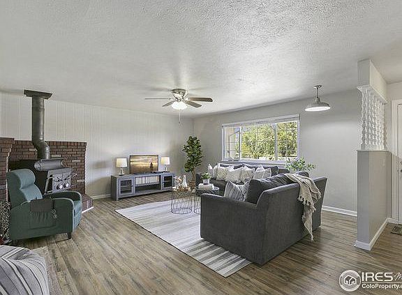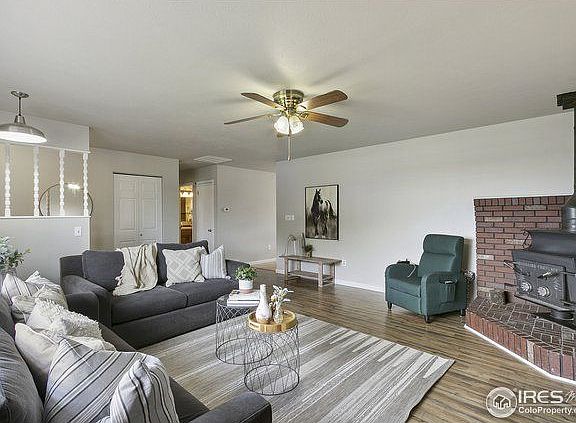 Horse ready! Must see hobby farm within biking distance to downtown Loveland. This 3 bed, 2 bath ranch style home is perfectly situated on ~ 1 acre, double lot, in a great rural neighborhood with no HOA.The backyard features fruit trees, garden boxes, outdoor riding arena/pasture and multiple outbuildings to include a 23 x 13 shop with electricity, a 14 x 13 walk-in stall and a 15 x 10 loafing shed. The interior of the home has been freshly painted with all newer windows, baseboard heat has been converted to forced air and A/C. The country kitchen has been upgraded with a gas range, provides plenty of cabinets and a bay window so you can keep an eye on your animals. The dining room has a wood burning fireplace and the living room has a cozy wood burning stove. The oversized, covered patio is already stubbed with gas for your grill.