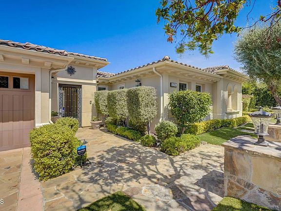 This single-story estate property is situated within the secure confines of the 24-hour guarded Rancho Conejo community in the charming area of Thousand Oaks. This home boasts luxurious features that create an atmosphere of opulence and comfort. The centerpiece of the residence is a spacious kitchen equipped with an array of high-end appliances, including three ovens, two dishwashers, a sub-zero refrigerator/freezer, a warming drawer, a pot filler, and a wine fridge. The use of natural materials like flagstone in the courtyard and patios, as well as granite, marble, tumbled stone, and solid oak flooring, adds to the property's visual appeal and creates a truly sensational ambiance. With four bedrooms, each accompanied by its own en-suite bathroom, and an additional half bath, along with two dedicated office spaces, the home offers ample room to accommodate various needs and preferences. The home is positioned adjacent to protected open space, nestled along the cliffs of the Arroyo Conejo. The backyard offers a tranquil retreat, where you can unwind in a private 12-person spa while taking in spectacular views. Additionally, there's a fire pit for cozy evenings and an outdoor kitchen and bar, perfect for summer barbecues. In terms of efficiency and convenience, the property comes with several thoughtful amenities, including plantation shutters for light control, drip irrigation for water efficiency, artificial turf for low-maintenance landscaping, recirculating hot water for prompt availability, and an owned solar system that substantially reduces the monthly energy bill. Moreover, a propane backup generator ensures that essential functions can be maintained even during power outages. The interior of the home is adorned with crown molding, adding a touch of elegance. The property also features a three-car garage with storage options, and solid interior doors contribute to the overall sense of quality and craftsmanship. This single-story estate property in Rancho Conejo, Thousand Oaks, offers a luxurious and comfortable lifestyle. Its thoughtful design, premium materials, breathtaking views, and modern amenities make it a truly exceptional place to call home.WEBSITE - https://media.showingtimeplus.com/sites/yrwrgwe/unbranded