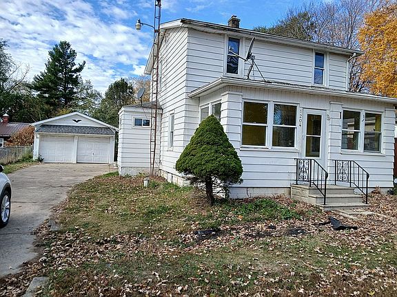 3bed, 2 full bath single family home with 2car detached garage and shed. Forced natural gas heat, new pressure tank, well and well pump in 2024. Enclosed front sunroom, enclosed back porch. Large eat in kitchen. Full basement partially finished. Lot size is 132x65x132 (0.20 acre). Laundry room on main floor! Shingled roof less than 10 years old. Paved road, large concrete driveway. Dead end road.