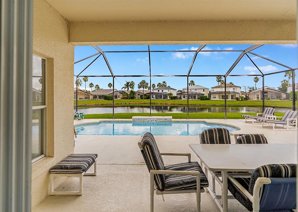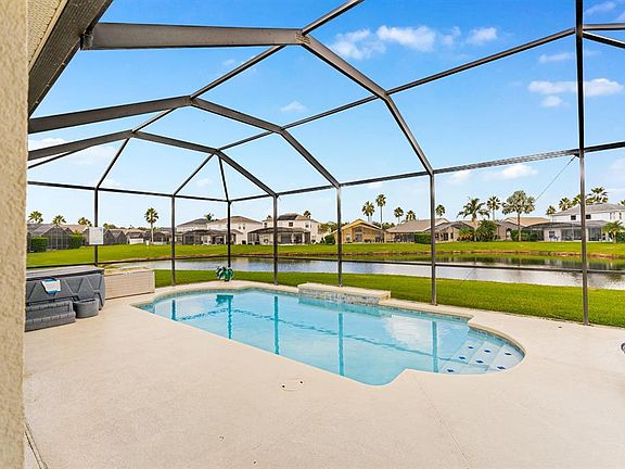 Welcome to your dream home, where luxury and serenity harmoniously blend within a charming gated community. This thoughtfully designed residence offers great comfort and generous space, perfectly suited for families or entertaining guests. A newly installed roof and paved driveway welcomes you home. As you enter through the tiled foyer, the staircase leads you to the upper level onto an open balcony overlooking the family room below. Upstairs you;ll find a second primary suite, two additional guest bedrooms, family bathroom and a light-filled loft area—ideal for a home office or peaceful reading nook. Downstairs, just off the entryway, the expansive great room welcomes you with beautiful and durable laminate flooring and a layout that seamlessly accommodates formal living and dining spaces. At the rear of the home lies the true heart of the property: a well-appointed kitchen featuring stainless steel appliances, abundant counter space and cabinetry, and a spacious island with seating, which opens to the inviting family room. The living area impresses with soaring double-height ceilings and transom windows that flood the space with natural light, creating a warm and welcoming ambiance. Boasting four bedrooms—including two luxurious primary suites—this home delivers an ideal balance of privacy and flexibility. The downstairs primary suite offers serene views and direct access to the pool area, providing a peaceful retreat. Upstairs, the second primary suite is equally impressive, also complete with a spa-inspired bathroom featuring a garden tub, walk-in shower, and dual walk-in closets. Step outside to your private screened-in oasis, where a large covered lanai and expansive pool deck invite you to relax, entertain, and dine alfresco in style. Whether enjoying the sun or hosting guests, wildlife spotting from your vantage point alongside the large pond, this outdoor space is sure to impress. A new water heater, installed in 2024, adds to the home’s list of thoughtful upgrades. Perfectly located near Highway 192, Old Town, and world-famous theme parks, with a wealth of restaurants, specialty shops, and grocery stores just minutes away.