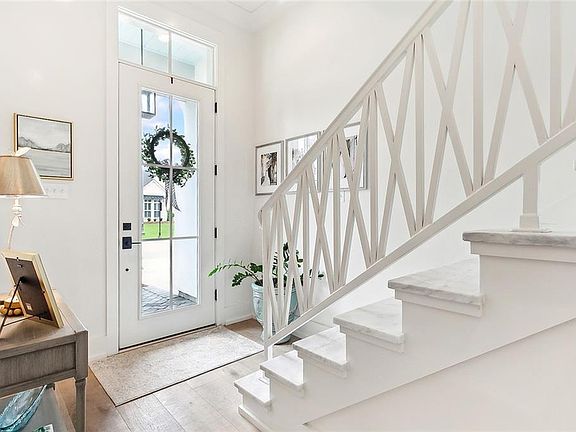 This beautiful home in the heart of River Club boasts rich architectural features, custom lighting and window treatments, an efficient floorplan and a chic, heated, swimming pool. The home lives larger than the square footage suggests with a welcoming foyer that opens to the kitchen and living room which, like the master suite, offer unobstructed views of the saltwater swimming pool. The kitchen features honed White Carrera Marble counters, stainless appliances and a wet bar with glass-door cabinets and a wine refrigerator. The spacious first floor master suite has both a soaking tub and walk-in shower, two vanities and a large custom closet. Marble steps lead the way to the second floor which is home to two bedrooms, one bath and a balcony. Whole-house generator. River Club is a gated community with a private marina and pavilion and is located in the heart of Covington’s Hwy 21 retail and medical corridor.