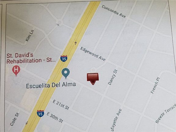 Fantastic location ready for rebuild, or redevelopment. This property is E of IH35 across from St. David's Hospital. House is pier and beam with cinder blocks. It has original hardwood floors, mint green bath fixtures, and possible bonus room in floored attic. Large back room has washer dryer connections, could be added to kitchen area. Ceiling is missing. House is not habitable and needs EVERYTHING from roof, siding, sheetrock, fixtures, HVAC, etc. No survey available. Sold "AS IS" with no repairs and buyer is responsible for all evaluations of potential. Redevelopment subject to city rules.