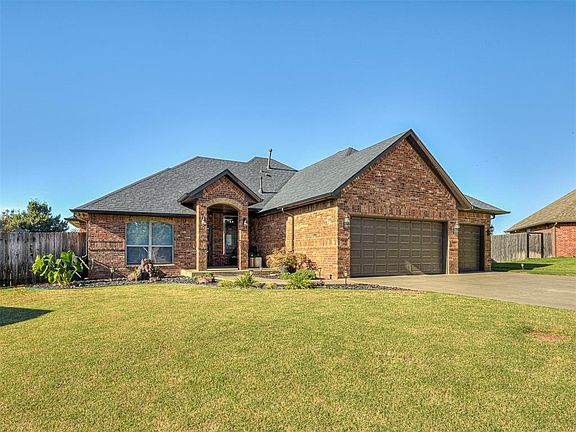 Welcome to your dream home in the beautifully maintained Kingsway Addition of Yukon! Perfectly situated on an oversized lot in a quiet cul-de-sac, this gorgeous 3-bedroom + bonus room, 2.5-bath, 2,357 sq. ft. home offers space, comfort, and style — all just minutes from top-rated Yukon schools. This home showcases thoughtful planning and quality craftsmanship throughout. The inviting living area features a cozy gas-log fireplace and plenty of natural light, while the large formal dining room is ideal for hosting family and friends. The kitchen is a showstopper with granite countertops, a center island, pantry, stainless steel appliances, updated lighting, and modern finishes. Retreat to the primary suite, complete with a jetted tub, double shower, dual vanities, and a spacious walk-in closet featuring off-season hanging. The Jack-and-Jill bath between secondary bedrooms offers convenience and privacy for everyone. Step outside and fall in love with the backyard oasis — featuring a semi in-ground pool, fire pit, fountain, and a 12x20 storage shed with loft and electricity. Enjoy summer evenings on the covered porch or around the fire pit under the stars. Schedule your showing today!!