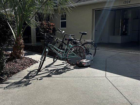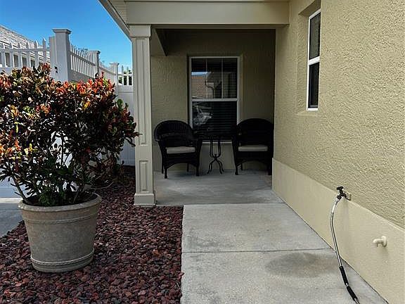 Location, Location, Location! Beautifully Updated Turnkey Courtyard Villa just 0.2 miles from Lake Sumter Landing. One of the most desirable locations in The Villages. Enjoy a short walk or golf-cart ride to the Boardwalk, Waterfront Dining, Live Entertainment and Boutique Shopping. Recent Updates September 2025: New Roof with Architectural shingles, New HVAC with energy-efficient furnace and A/C. New Hot Water Tank and Garbage Disposal. Updated Kitchen featuring Miaggio Quartz Countertops, New tile backsplash and an extra-deep stainless-steel sink with a brushed nickel-gooseneck faucet and pull-down sprayer. Brushed gold cabinet pulls, and custom pull-out sink drawers add a designer touch. Custom woodwork throughout, including 5 3/4" Crown Moulding and handcrafted wood cornice boxes accenting every window and doorwall. Newly refinished lanai flooring and fresh interior and exterior paint using premium Sherwin Williams products. Updated Bathrooms with Quartz countertops, under-mount sinks, brushed nickel faucets and hardware and new handheld shower heads. The Open floor plan is bright and airy with vaulted ceilings and abundant natural light. The functional, well-equipped kitchen includes a counter-height bar-perfect for casual dining or entertaining. Engineered hardwood flooring flows seamlessly through the kitchen, living, dining and bedroom areas, while the bathrooms and laundry room feature Armstrong Premium ceramic tile for durability and style. The spacious Primary Suite has a tray ceiling with ceiling fan, the ensuite bathroom has been newly updated, with quartz countertops, undermount sinks, new brushed nickel faucet & hardware & new hand-held showerhead. It has a large walk-in closet, with shelving for storage and a Sliding glass door wall that leads to the lanai and outdoor courtyard. The Guest & Flex Rooms provide both comfort and versatility. The second bedroom features a vaulted ceiling with ceiling fan and is located near the guest bath, with a pocket door providing private guest suite potential. The versatile third bedroom doubles beautifully as a home office or den, complete with a partner's desk, large bookcase and a comfortable sofa. A spacious closet provides additional storage and currently houses workout and sports equipment. Enjoy the Florida lifestyle in your screened-in lanai, featuring newly refinished and painted concrete flooring and a ceiling fan for cool comfort. The private block & stucco courtyard showcases updated, maintenance-free landscaping with a sprinkler system-the perfect setting for pets, entertaining or relaxing outdoors. The home has tilt-in windows for easy cleaning. This Turnkey Villa includes everything you need to move right in. even a pair of Bianchi bicycles for riding into town and exploring The Villages The keyless entry front door adds modern convenience and security. With its low bond, prime location near Lake Sumter Landing and thoughtful upgrades throughout, this home combines, comfort, quality and value. Experience the carefree lifestyle The Villages is known for-where everyday feels like a getaway!.