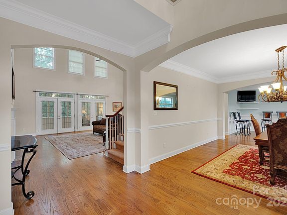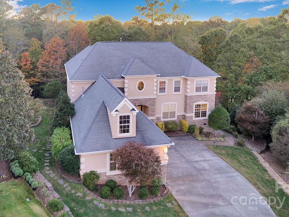 Welcome Home to this luxury Golf Course Estate in Waterford Glen! A premier 18-hole golf course community with a pool, just minutes from Riverwalk, and all of your conveniences for shopping and restaurants. This beauty is situated at the end of a cul-de-sac and between the 15th and 18th holes. Stunning 5-bedroom, 4-full bath offering timeless elegance and modern comfort. Designed for flexibility, the home includes a spacious theater room that can serve as a 6th bedroom or bonus suite. The main-level primary en-suite features a beautiful coffered ceiling, an expansive walk-in closet, and a spa-like bath. A second bedroom or office on the main level adds convenience and versatility. The heart of the home is the two-story great room, filled with abundant natural light and a cozy gas fireplace flanked by built-in shelving. A separate dining room, sitting and bar area offer elegant spaces for entertaining and gatherings. The gourmet kitchen features granite countertops, kitchen island, stainless steel appliances, double oven, a walk-in pantry, abundant cabinetry, and breakfast room overlooking the private wooded backyard. Upstairs, includes three additional bedrooms, two full baths, a large sitting area or library, ideal for relaxation or study, and a huge theater room! Enjoy outdoor living on the screened in porch and deck overlooking private woods and the golf course, plus a lower paver patio and landscaped garden beds provide a peaceful retreat. The three-car garage adds luxury, convenience and value. This home offers so much privacy with over half an acre, woods to explore, the pool is walking distance, and sidewalks throughout the neighborhood!
