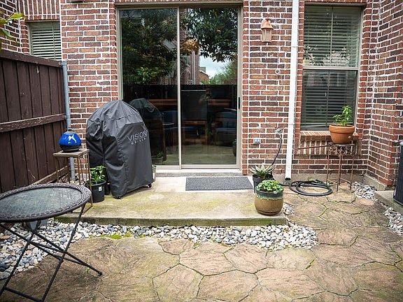 Beautiful upgraded Townhome just 5 minutes away from restaurants and grocery stores! Mi Cocina/Sprouts/Tom Thumb. Part of a gated community that includes community pool, social area with grill, pond, small nature trail and easy access pedestrian gate to shopping plaza. Townhome upgraded features include: hand scrapped hard wood floors across entire house (excl. restrooms and utility room), custom full oak hand scrapped stair case, smart Nest thermostats, and extended balcony. Additional features include: stainless steel appliances, granite countertops, chimney, two car garage and patio (with a view vs other townhomes in the community). The master suite includes a separate shower, dual sinks, and walk-in closet. Refrigerator included.