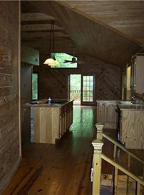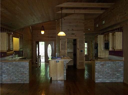 Log cabin style home with vaulted ceilings, open living area and much more.