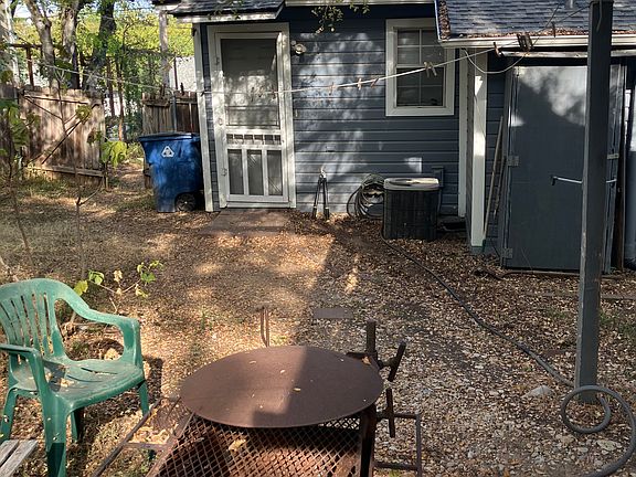 1 bed/1 bath + extra room for an office or den. Plenty of outside space on the front porch, and the large fenced back yard with shade, fruit trees, wildlife, and a stock tank pool/pond with waterfall. Back yard is shared with a neighbor in the back studio.