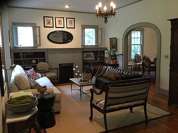 This home was built in 1930 and is located in the historic Houston Heights Dothan neighborhood. It has 10 foot ceilings, transomed and arched doorways, and original hardwood floors. Also, 2/3 bedrooms, 2 baths, sunroom, living room, 2 fireplaces, dining room, breakfast room, and screened porch. Updates include kitchen with quartz countertops, double ovens, pantry, storage, and new fixtures; laundry room with built-in cabinets and butcher block folding area; tankless water heater, and central air. The property has 2 patio areas, detached workshop, mature landscaping, irrigation, new fencing, and alley access to double driveway.