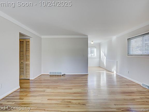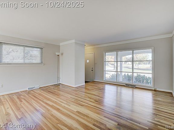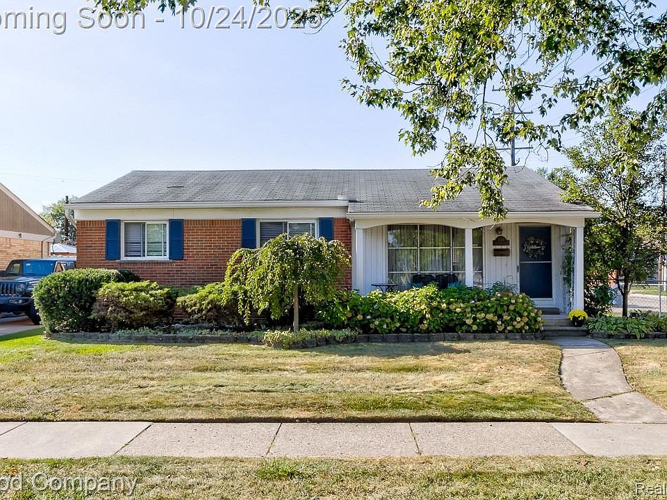 Matterport virtual walkthrough available on Homes. Charming brick ranch on a sunny corner lot in Royal Oak featuring a spacious layout, finished basement, and lovely outdoor living spaces. A beautifully landscaped front yard and covered entry welcome you into a bright living room with gleaming hardwood floors and a wall of windows that fill the space with natural light. The open layout continues into a dining area and a cheerful kitchen with white cabinetry, stainless steel appliances, and plenty of counter space. Down the hall, three comfortable bedrooms share a generous full bath with dual vanities. The finished basement adds excellent additional living space with a cozy family room, built-in shelving, a fourth bedroom with egress, a second full bath, and a dedicated laundry area. Outside, enjoy a fully fenced backyard with a private patio perfect for relaxing or entertaining, plus a detached two-car garage for added convenience. Welcome Home!
