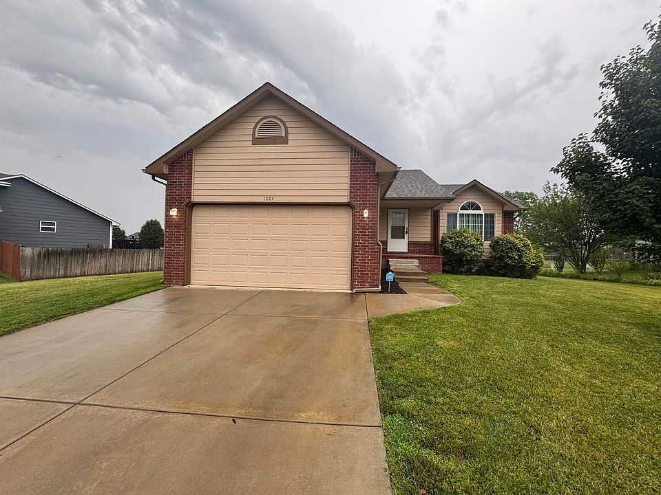 Move in ready! 4 bedrooms, 3 bath home in Goddard with finished basement and two car garage. Home features vaulted ceiling in main area, all kitchen appliances, master suite with full bath and large finished view out basement with huge rec room, full bath and bedroom! Exterior features deck and sprinkler system on well. Basement also has unfinished 5th bedroom.