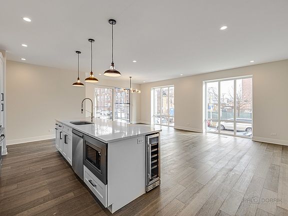 Experience modern Chicago living in this stunning, sun-drenched duplex-down condo just steps from iconic Humboldt Park. This spacious 4 bedroom, 3 full bath home offers the perfect blend of style, comfort, and convenience with high-end finishes throughout. The main level features an open-concept living space with floor-to-ceiling natural light, sleek quartz countertops, stainless steel appliances, a wine fridge, and elegant designer details. The generous primary suite includes a beautifully appointed en-suite bathroom for true retreat-style living. Head downstairs to a fully finished lower level offering a large family room, additional bedroom, and a full bathroom-ideal for guests, an office, or extended family living. Enjoy morning coffee or summer evenings on your private outdoor deck, plus abundant storage space within the building. Additional perks include: Garage parking In-unit washer & dryer All appliances included (including wine fridge) Extra storage room Located on a quiet tree-lined street, yet walking distance to Humboldt Park, local cafes, restaurants, and public transit, this home brings you the best of city living.