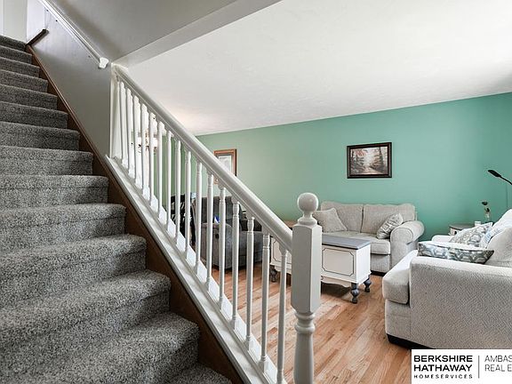 Contract Pending - on market for backup offers. Sensational 1.5 Story w/Modern Updates in Bellevue’s Birchcrest! Stunning curb appeal w/cozy front porch, vinyl siding & windows, brick accents, shutters & mature landscaping. Gorgeous hardwood floors (2023 refinished) & new paint in formal living, dining & family rms. Family rm w/brick fireplace (gas log). Dining rm slider opens to new patio (19x12), fire pit, shed & partially fenced bkyd. Modern kitchen (2014) has 42-in shaker oak cabinets, LVT flooring, pantry & black/stainless steel appliances (gas range). Primary bdrm suite (main flr) is oversized w/private deck (10x14), large walk-in closet & 3/4 bath. Laundry hook-ups & drop zone (main). 2nd flr has 4 bdrms & 1 full bath w/tile surround & tile flr. Finished lower level has rec area & office space (LVP flooring), storage & 1/2 bath. New HVAC (2020). Great location as just blocks to elementary, middle & high schools, shopping, parks & Offutt AFB is just to the south. Move-in ready!