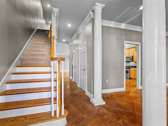 Spacious townhome with elevator in popular Lakeside Village offering 4 bedrooms, 3 full baths, and 3,029 sq ft across three levels. Great bones and a fantastic floor plan, the sellers recently freshened up the home and now ready for your personal touches. Enter through the grand arched doorway into a spacious main level with high ceilings, scored concrete floors, neutral walls, gas fireplace, and built-in wet bar. The kitchen includes stainless appliances, granite counters, and custom cabinets, and it opens to a private brick courtyard with fountain – a nice spot for morning coffee or evening drinks. Upstairs you’ll find the primary suite with en-suite bath and large closet, plus two bedrooms, full bath, and laundry room. The entire third floor is one big flexible space currently used as a media/game room; it can easily function as a true fourth bedroom or guest suite. Convenient central Mandeville location – minutes to the Causeway, schools, shopping, and the lakefront. Solid opportunity to buy into one of Mandeville’s favorite townhome neighborhoods at a realistic price point and make it your own.