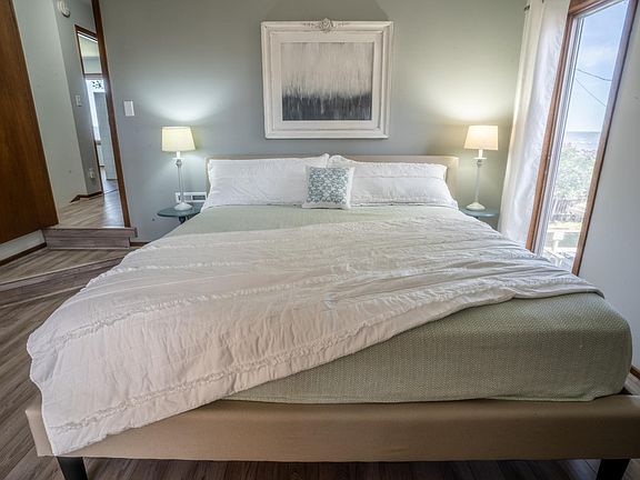 This home features an amazing bunk room with a queen, full and two twin beds, it's named after Grandma Evelyn. Across the hall, the Arlene room (named after our other grandma) has a spacious king-sized bed. These two rooms have an incredible view facing east overlooking the beach and stunning Lake Superior. The third bedroom, fondly named the Sundrop Room in honor of our dad, also has a King-sized bed. You have a view of Lake Superior from the south window looking to the east. This second-level room also features a spacious, adjacent porch with a private deck. Plenty of space for a pack-n-play or air mattresses. All this is situated in Duluth's famous Park Point and is just a short walk down the beach from the Aerial Lift Bridge and Grandma's Restaurant in Canal Park. You're only steps away from Lake Superior's public five-mile sandy beach and Franklin Tot Lot, which is a rare find. The yard has a front and back deck, gas grill and an amazing lake view and access. Other items available: pack-n-play, booster chair, double stroller.