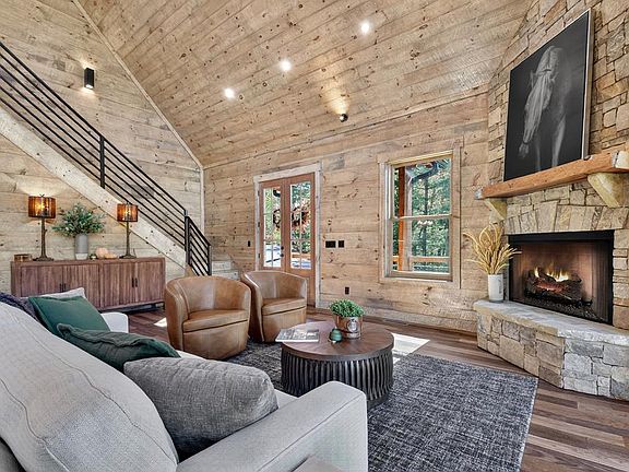 Nestled between the charming mountain towns of Ellijay and Blue Ridge, this stunning new construction by Homestead Mountain Home Builder's offers the perfect blend of modern comfort and natural serenity. Featuring 4 spacious bedrooms and 3.5 luxurious baths,( one bonus room) this home is designed for both everyday living and mountain retreat escapes. Enjoy the cozy stone outdoor fireplace, perfect for gatherings under the stars. Enjoy year-round panoramic views from your private sanctuary, located in a peaceful gated community with high-speed fiber optic internet—ideal for remote work or streaming in the mountains. The neighborhood includes a scenic common area with a serene pond, outdoor entertainment space, This is mountain living at its finest—peaceful, connected, and beautifully crafted. Don't miss your chance to own in one of North Georgia's most desirable communities.