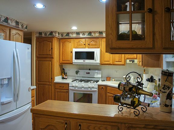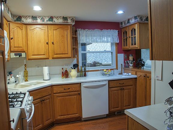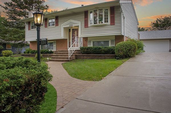 This 4 bedroom, 2 bath, expanded raised-ranch home is located directly across from Bock Park. Almost everything has been updated in-and-out in the 2000's. Close to highly rated schools including innovative Dooley Elementary school which offers dual language Japanese. Bock Park has many amenities including Pool, Walking Path, Baseball Diamonds, Basketball and Tennis Courts and Community Center. Off of a beautiful tree-lined street arrive at a new gas light post, newer winding paver walkway, stairs and retaining walls right up to the upgraded door with side lights. Step into the open foyer with new light fixture, hardwood floors and custom wood and metal railing. The custom kitchen has newer LG appliances and overlooks the dining room. Down the hall there are three freshly painted bedrooms; two have new carpet, the third bedroom has beautiful Pergo flooring. Hardwood floors in living, dining, kitchen, foyer, stairs and hall. The lower level walkout has a remodeled and spacious family room with gas fireplace. Newer concrete patio and driveway frame the easy maintenance deck with a three season gazebo and a natural gas grill; ideal for outside entertaining (both included). Newer, extra large 2.5 car garage with loft. A list of the many updates to this brick & vinyl home will be on location. Come see if this is the one.