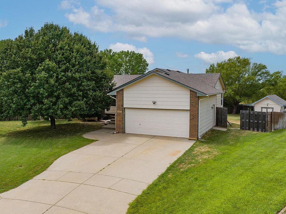 You are going to fall in love with this Goddard beauty that has only had one owner! Nestled in a cul-de-sac on a HUGE lot with a country vibe you will find this amazing place to call home. With two bedrooms and three FULL bathrooms and main floor laundry - two bonus bedrooms downstairs in the almost fully finished basement. Gain instant equity with this unfinished basement with painted drywall up and only in need of flooring and a few other things to be considered finished making this a 4 bed/ 3 bath! New HVAC just installed! Looking off of the beautiful deck you will see nothing but field in the back of your new home making this the perfect place for entertaining!