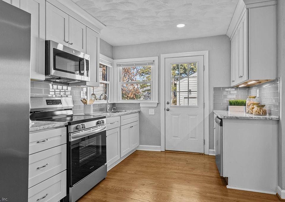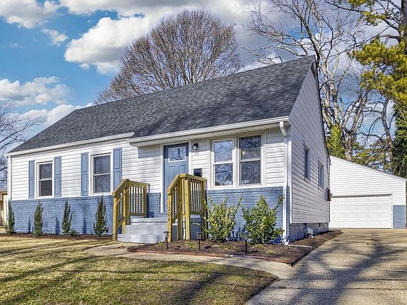 Beautiful blue & white, and cute landscaping, make this sweet home stand out amongst the others! Matching, 2-car, detached garage in the back with plenty of yard space! Brand new water heater, and the roof was just replaced in 2024! New siding and windows as well! Open layout inside, and the kitchen is made gorgeous with stainless steel appliances, granite counters & popular backsplash. Lovely vanity in the bathroom, and refinished hard wood floors. Conveniently located near popular shopping and eateries. This home has it all!