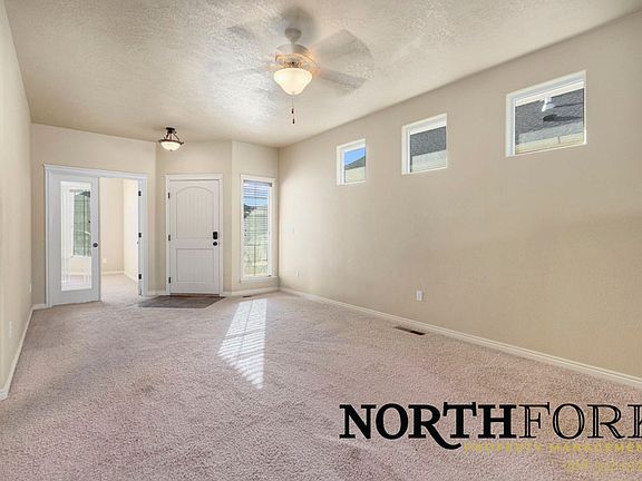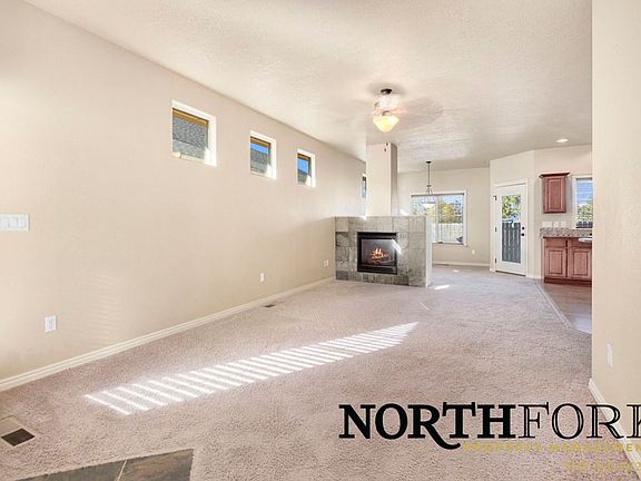 Craftsman style patio home located in The Ranch subdivision with front lawn maintenance included! Upgraded features including hardwood kitchen floors, stainless appliances, custom tile, 9' flat ceiling, and a fireplace. Extra large kitchen is great for entertaining. Dining room and master bedroom exit is to the covered patio with glass doors that include built-in blinds. Beautiful woodwork throughout this home with slate tile on the fireplace. This is a must see!