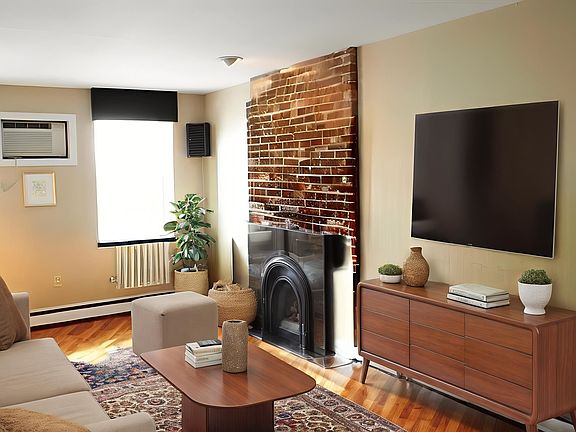 Welcome to 1204 Washington Ave #2S: Wake up to the morning sun in this large(790sft), updated one-bedroom condo on uptown Washington Street. The open-plan living and dining area showcases exposed brick, a decorative fireplace mantle, and recessed lighting. The renovated kitchen is equipped with task lighting, stainless steel appliances, quartz countertops, a marble breakfast bar, and a glass tile backsplash. The modern bathroom includes classic white subway tiles and a vanity with extra storage. The spacious bedroom faces the courtyard, ensuring both privacy and natural light that also features double closets with built-in storage. Additional amenities include ample closet space( 5 of them), Hard wood floors, free laundry with a private basement storage unit and a shared courtyard. Located on the desirable 1200 block of Washington