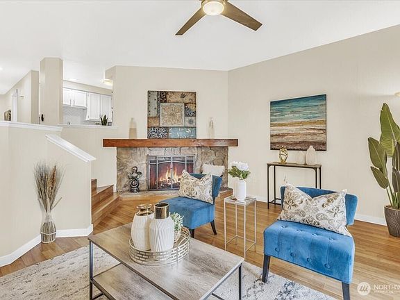 Come check out this updated, 1 bedroom, 1 bathroom, ground floor condo just blocks away from Juanita Village and Lake Washington! Relax in front of your wood burning fireplace in your sunken living room. Nook off the kitchen would make the perfect dining space or office. Owner’s suite has a walk in, custom closet system. In unit washer & dryer. All appliances stay! Fully fenced and private outdoor patio space! Assigned, covered parking spot with lots of guest parking. Private storage unit. Great restaurants, shopping, lake access, plus so much more out your front door! Cats and dogs allowed. No rent cap and priced to sell!