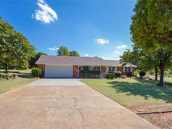 Cure ranch home on acreage with Moore schools. This 3 bedroom home has been well cared for and has had many updates over the past few years! (see disclosures for list). Formal living room; Cozy living room with fireplace and with kitchen and dining room adjacency. Refinished cabinetry, updated sink , updated countertops, updated flooring, updated cooktop and vent hood and updated lighting to enjoy. Bathrooms have received updates with new counters, sinks and toilets. The master has ensuite bath and walkin closets. The yard is amazing with 3 outbuildings, gardens and a peaceful setting to enjoy nature. Welcome home.