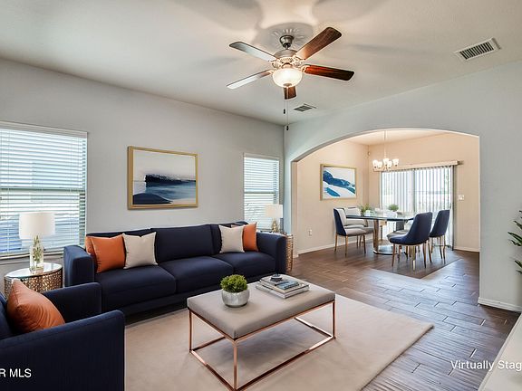 Fantastic Mesquite Hills home convenient to Ft. Bliss! Upon entry, you'll find a welcoming living area that is open to a nice dining area. The kitchen is large and features granite countertops, a gas stove and a good sized pantry. The ample primary bedroom is located downstairs and features a walk in closet There are three bedrooms upstairs along with a full bath. The back yard features a covered patio, pergola and large storage shed. Call for an appointment today!