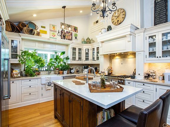 Porter Ranch Pool Home on a large 13,139 square foot lot with city light views from the living room and backyard and hill views from the rear of the property. This home is owned by one of the cities best kitchen designers and cabinet makers. The kitchen is unlike most you will ever see. It's spectacular! And the finest in quality! Marble counter tops, Italian Sink, Viking Stove, Center Island with a salad sink. The living room has vaulted ceilings, custom wainscoting and finished beams. Genuine hardwood floors throughout most of the house. Remodeled bathrooms, custom cabinetry and so much more. The garage area has been beautifully finished in to an office area with a large laundry room. The backyard is one of the largest in the neighborhood. Large swimmers pool and spa, huge lawn area. Close to incredible hiking trails, a great park and the new Porter Ranch Vineyards Shopping center, Great schools including Castlebay, Frost and Granada Hills Charter High School.